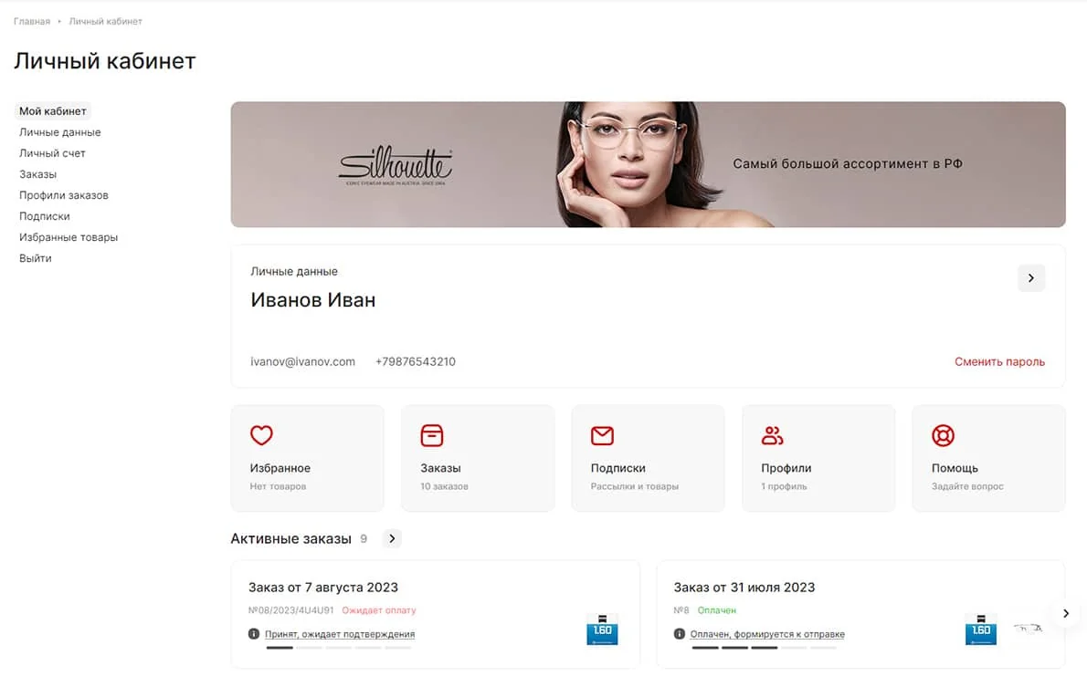 Профили - управление профилями заказов, в которых личные данные связаны с адресом доставки.